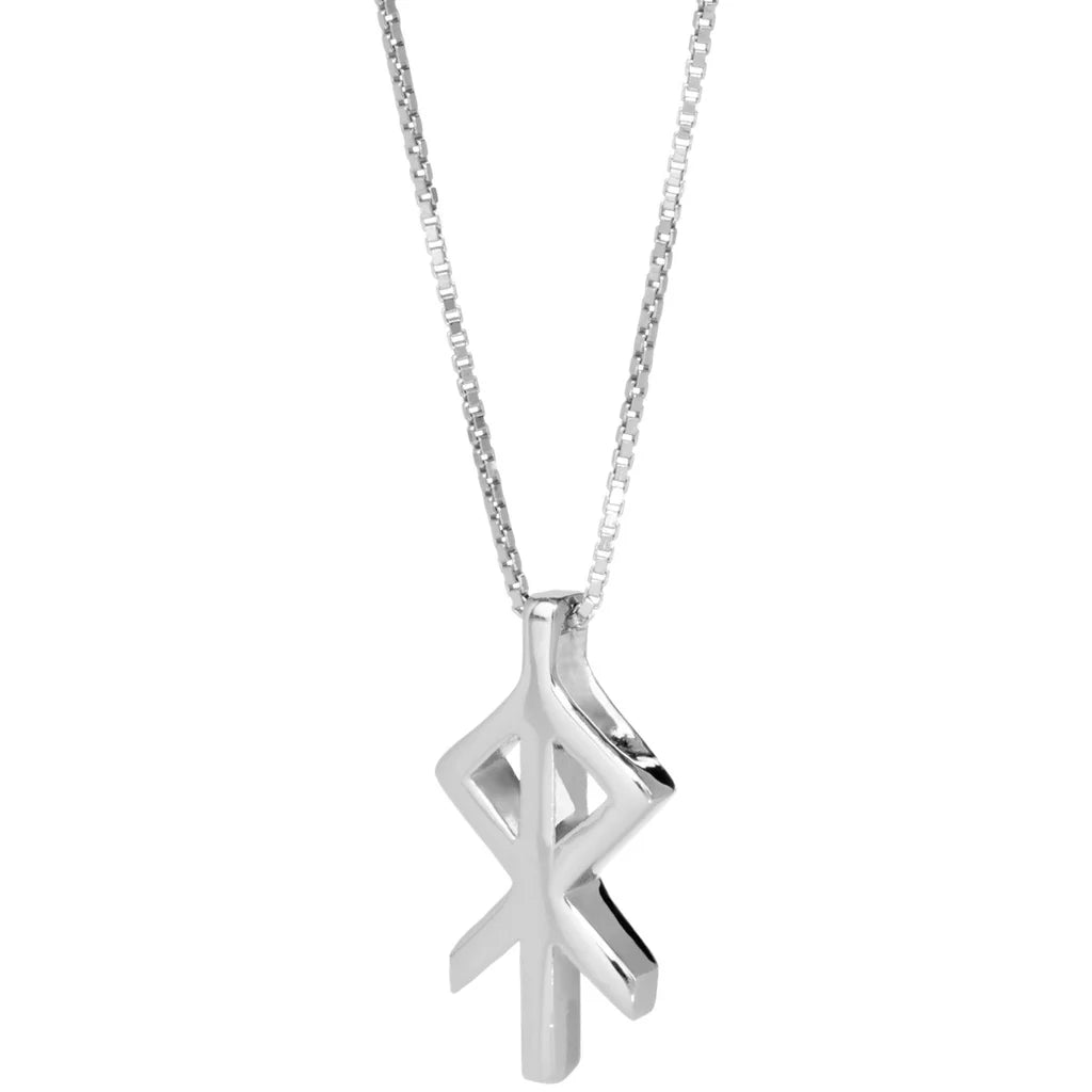 To evoke courage and warmth Heart / Hjarta symbolizes warmth, wholeness, and bravery. A symbol of fierce love and courage. Pendant and chain are rhodium coated .925 sterling silver, chain is 45 cm in length.