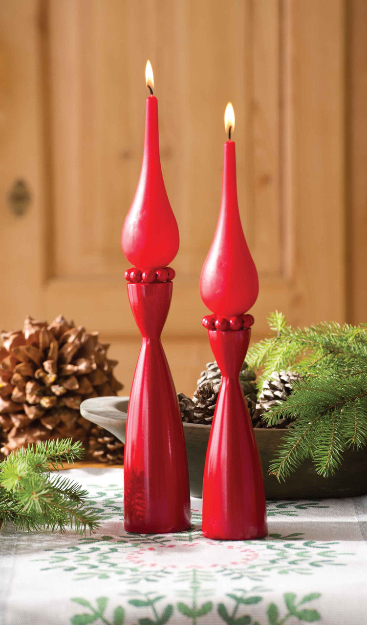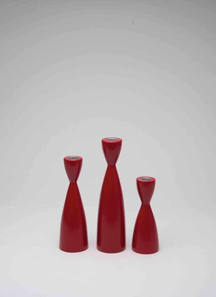 BIRCH CANDLEHOLDERS FROM SWEDEN in RED