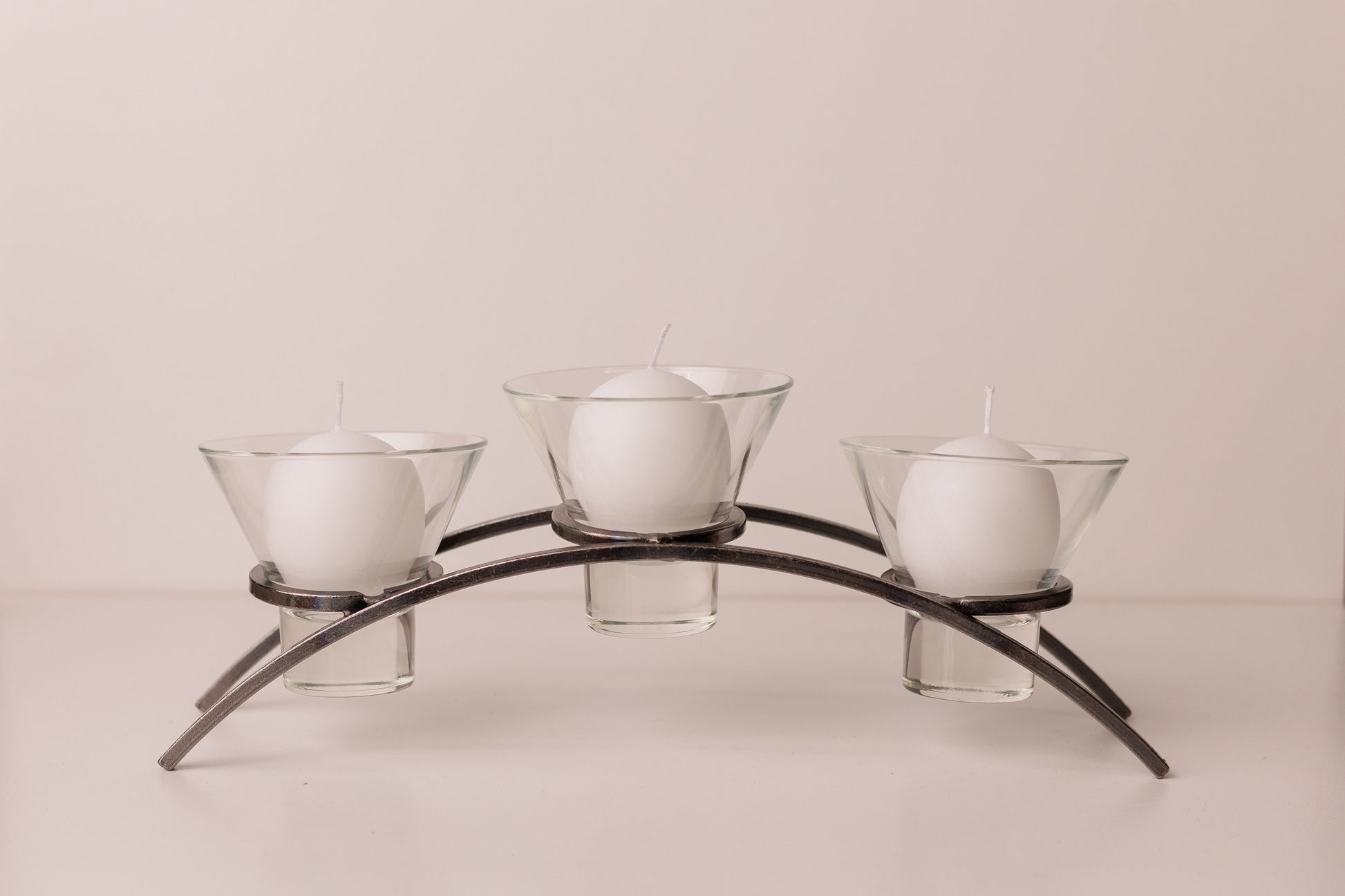 Elegant Danish Iron Candleholder 4 Cup Arch. Comes with 3 glass cups for ball candles or tealights. Fits in anywhere and makes a great gift, candles not included