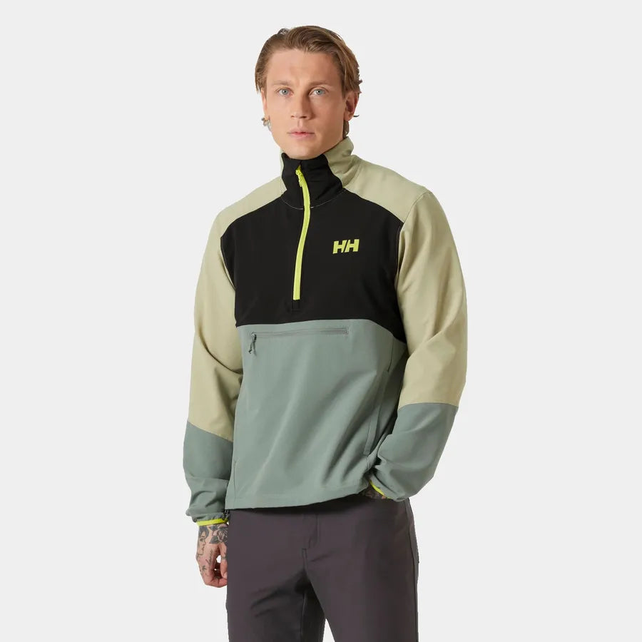 Our Men's Cascade Shield Anorak is a funky men’s anorak with a colorful design. It’s designed for adventurous, active men to provide protection on windy days with the combined shielding capabilities of a softshell and the cozy warmth of a fleece. This anorak boasts windproof and water repellent properties, making it perfect for hiking and various outdoor activities on breezy days or in light showers. With a convenient pullover silhouette, a zippered kangaroo pocket, open hand warmer pockets, an adjustable drawcord on the hem, and a comfortable high collar, this windbreaker anorak is both comfortable and functional.
