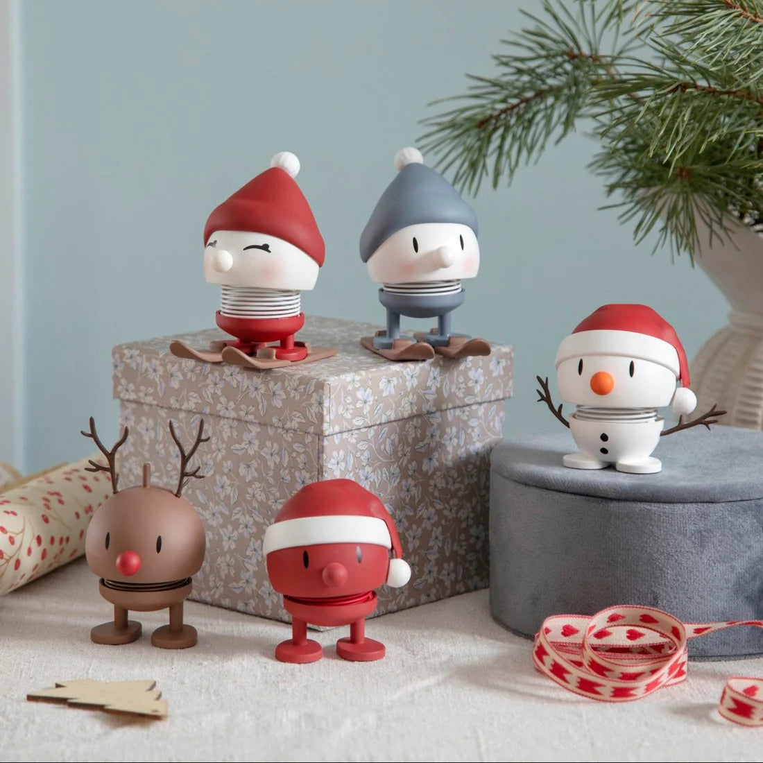 Give the red-cheeked skiing Hoptimist a little nudge and watch her jump for joy over the sparkling white snow on the mountain. Skiing Bimble is ready with her red top hat - both excited and proud - ready for adventure in the winter landscape. The skis are removable.