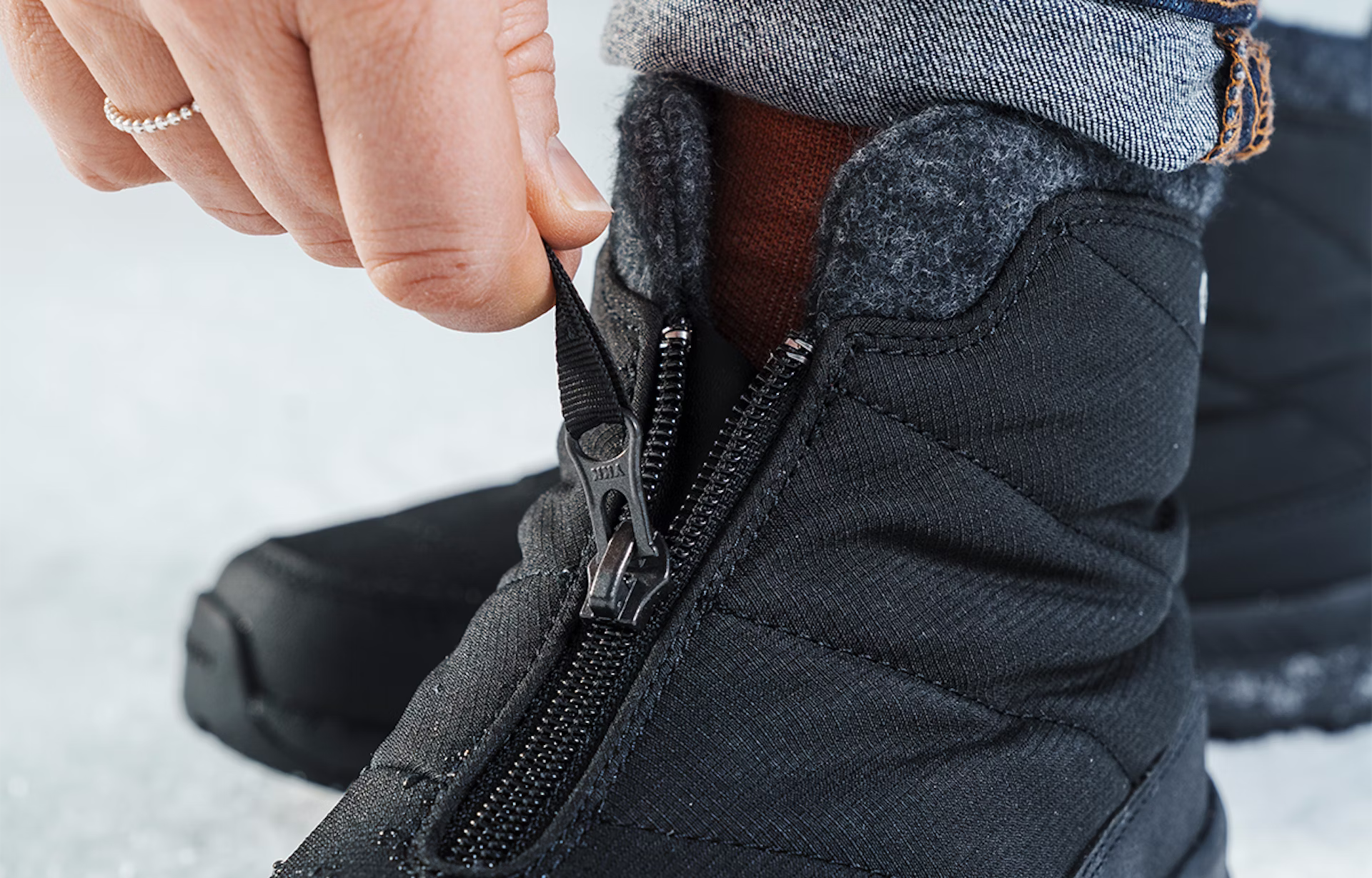 Sala is a light but warm winter boot designed for comfort. Its notably soft upper is made of quilted polyester, a durable and water-repellent textile made from recycled Ripstop polyester.