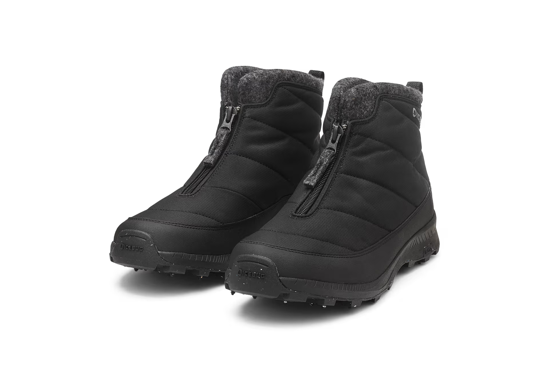 The shoe's zipper is located at the front, making it easy to put on and take off. Under the sole, you'll find Icebug's dynamic steel studs BUGrip, which allows you to walk relaxed on ice and comfortably on sidewalks and other hard surfaces.