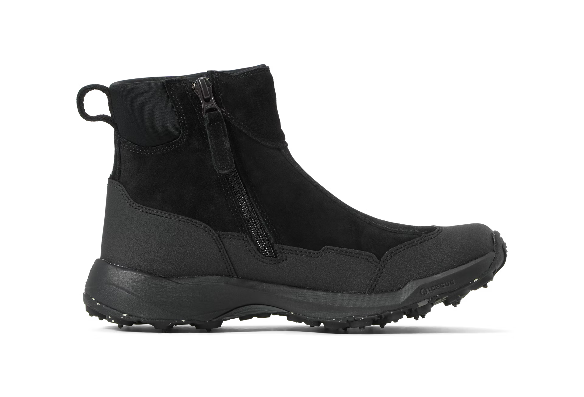 The shoe's zipper is located at the front, making it easy to put on and take off. Under the sole, you'll find Icebug's dynamic steel studs BUGrip, which allows you to walk relaxed on ice and comfortably on sidewalks and other hard surfaces.