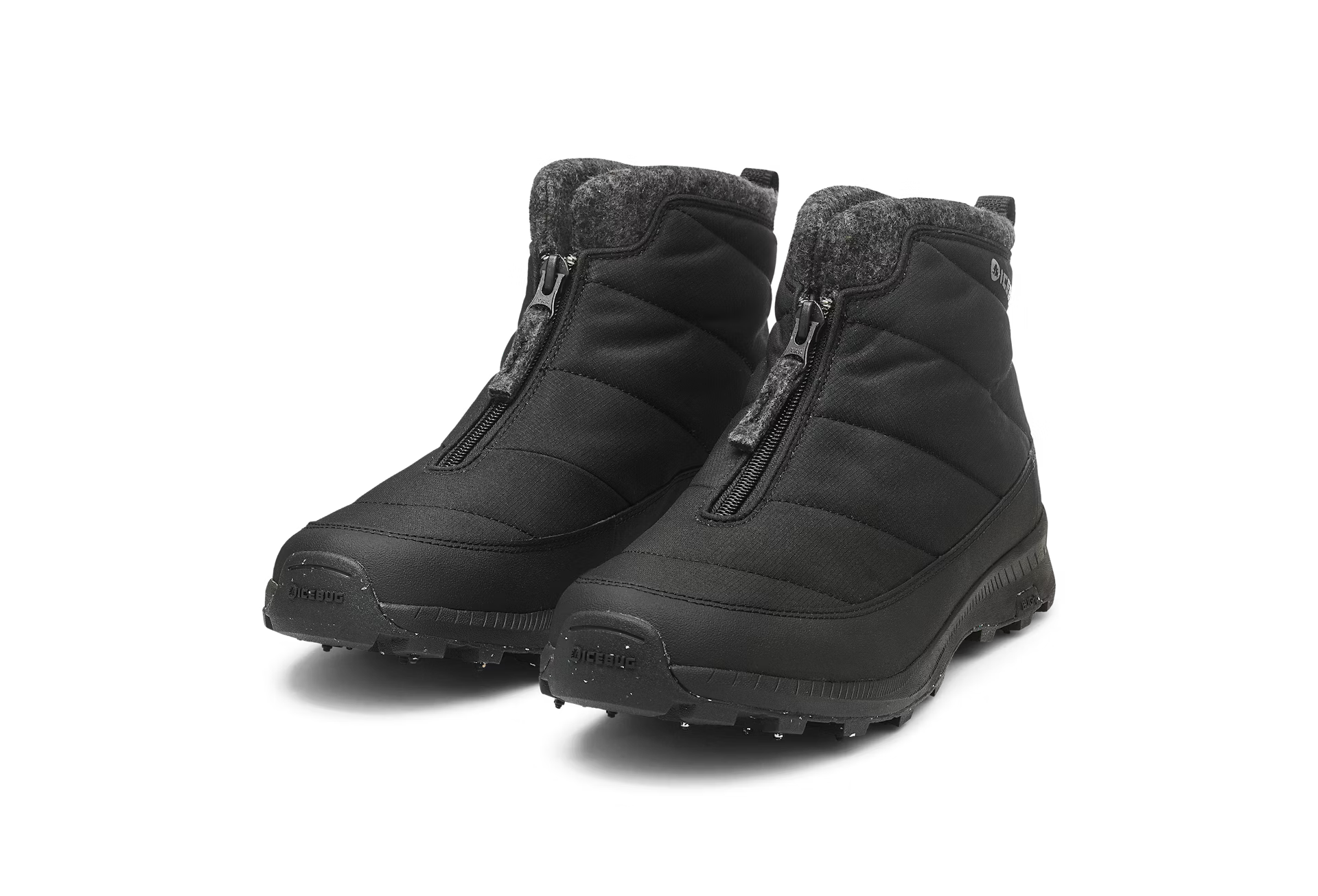 The shoe's zipper is located at the front, making it easy to put on and take off. Under the sole, you'll find Icebug's dynamic steel studs BUGrip, which allows you to walk relaxed on ice and comfortably on sidewalks and other hard surfaces.