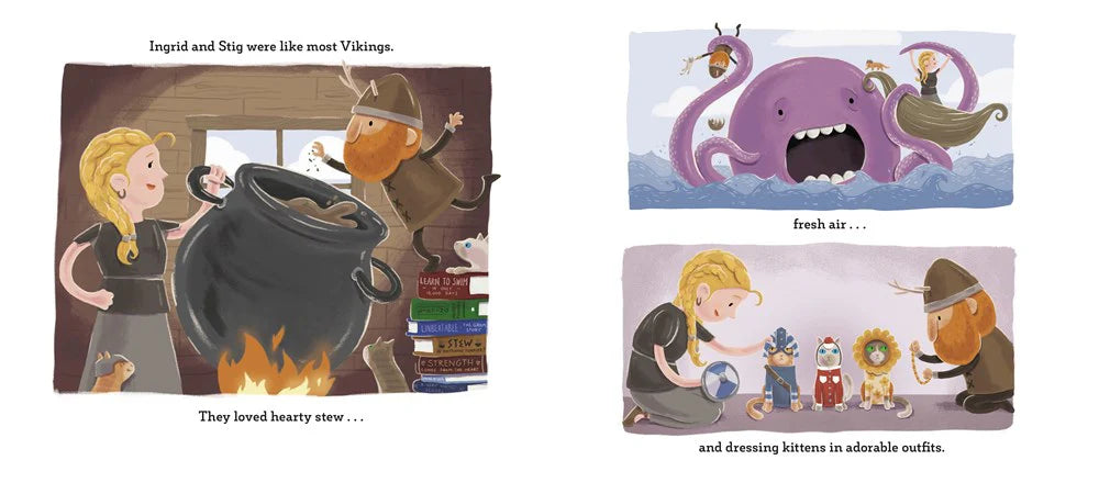 Ingrid has everything a Viking could want—a cozy home, a best friend, and very cute kittens. But she's always wanted one more thing, to win the Strongest Viking Contest. Her only problem? She doesn't know how to swim! Her best friend Stig is determined to help her learn . . . but along the way Ingrid learns that that some things are even more important than winning. Ages 3 - 7.