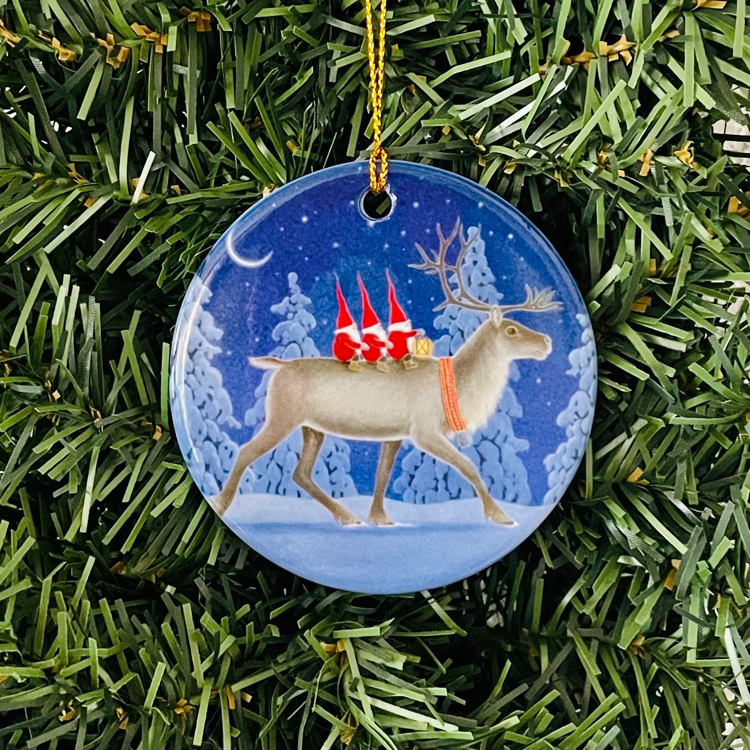 Ceramic Ornament Eva Melhuish Riding Reindeer
