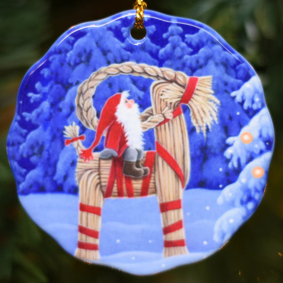 Ceramic Ornament Eva Melhuish Tomte on Straw Goat