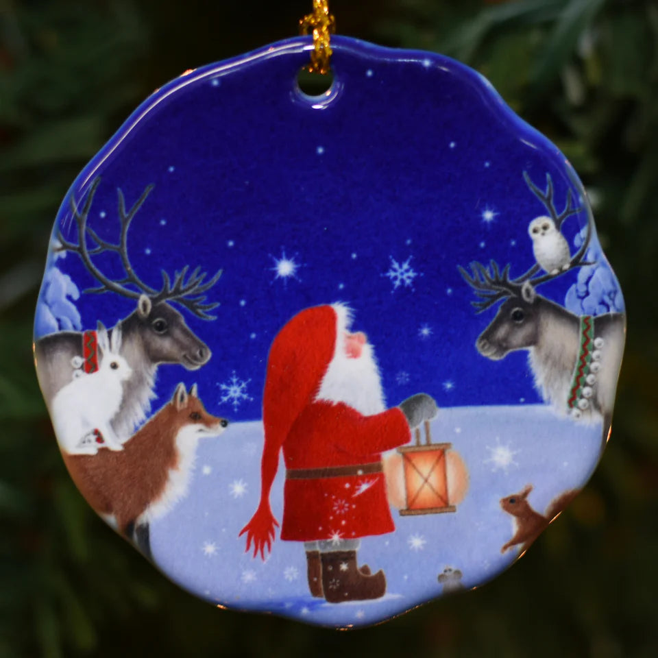 Ceramic Ornament Eva Melhuish Tomte with Reindeer & Owl