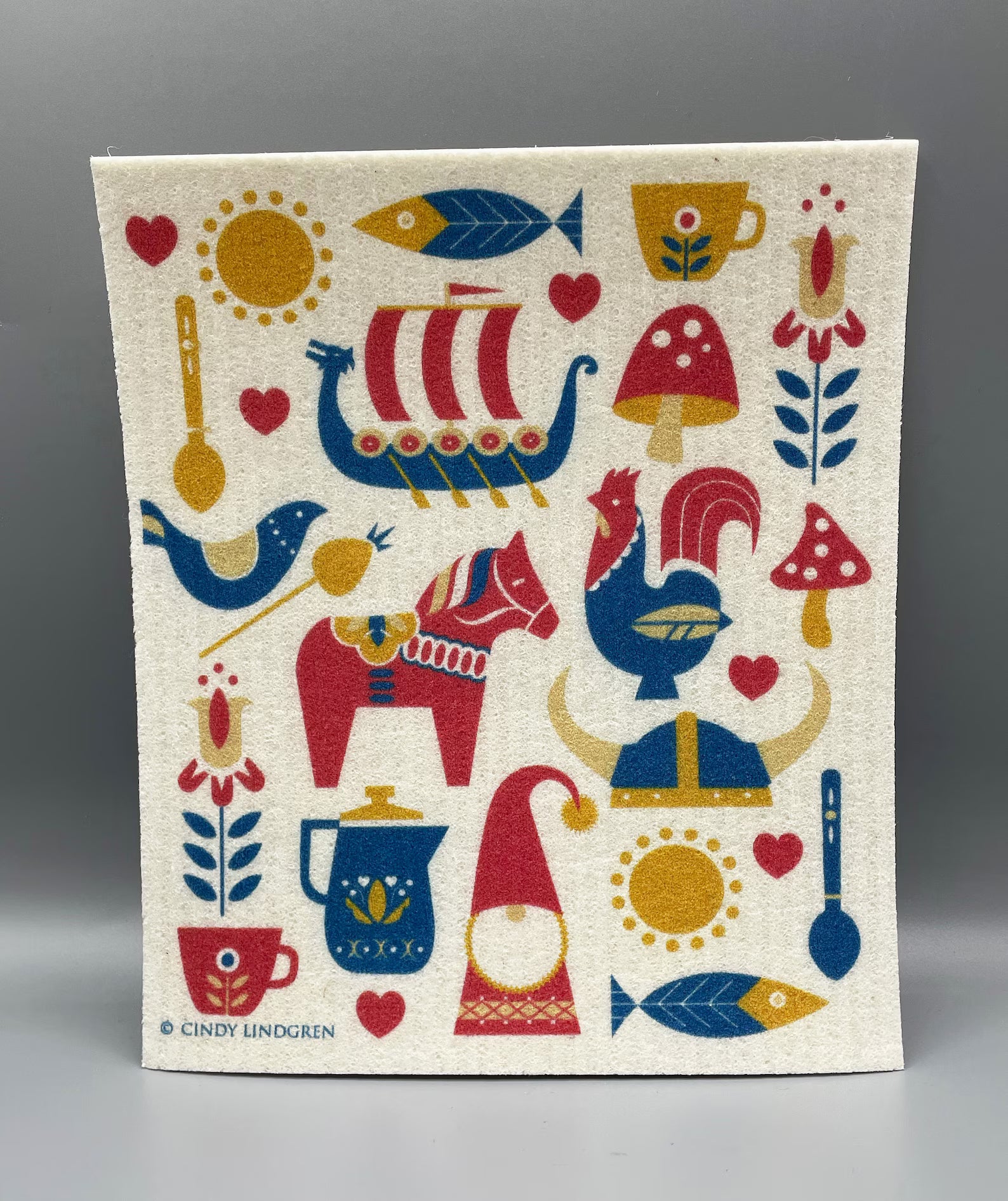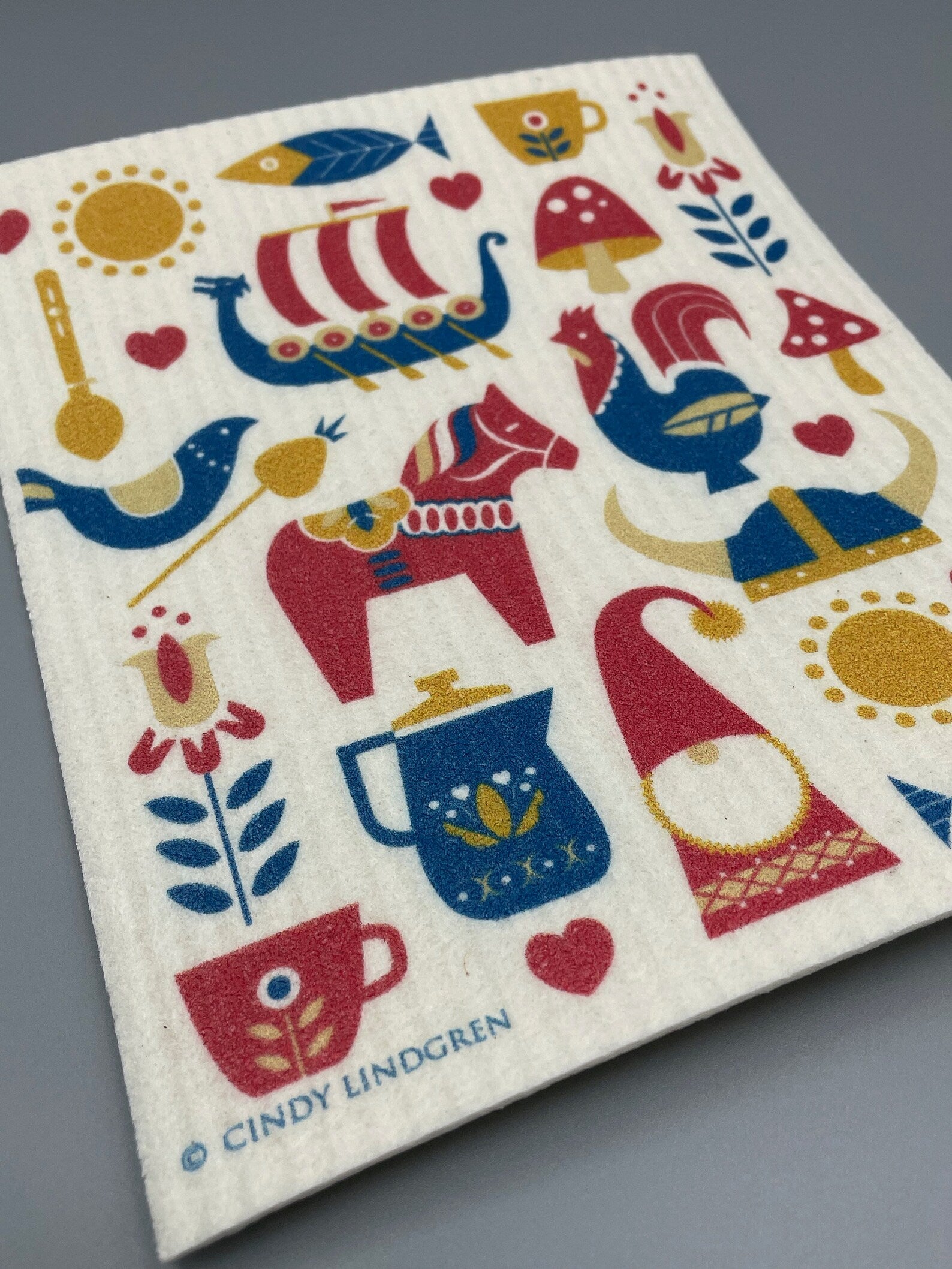 These marvelously absorbent dish cloths are a wonder in the kitchen. You'll never want to go back to sponges or regular cloths when you see how they work. They soften when wet and wash and dry like a dream. Kitchen surfaces are virtually streak-free. Made of 70% cellulose and 30% cotton, they're durable (just wash them in your washing machine). And since they are all natural you can even compost them should you tire of them. They're more sanitary than sponges -- they dry out more quickly. Use them instead of paper towels to blot up spills -- they absorb 15 times their weight in water. And the motifs will give your kitchen a Scandinavian accent.