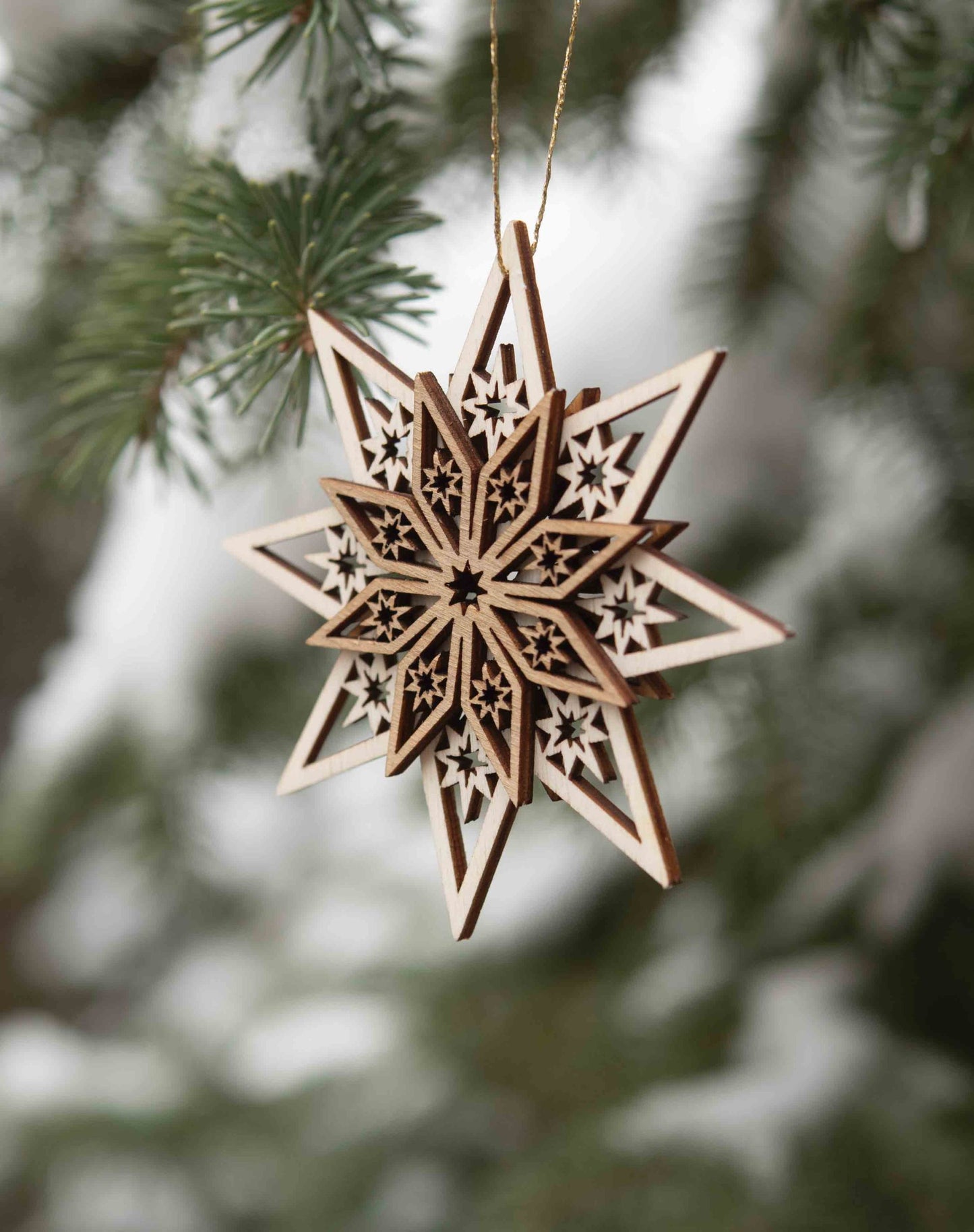Wooden Snowflake Star/Stars Lasercut Ornament