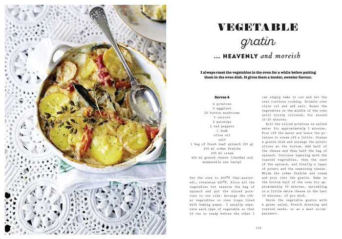 Milo Kalén shares the delights from her own Kaka på Kaka café in Sweden, offering a delightful collection of recipes for sweet and savory treats. Fika may be famous for its traditional baked goods, but Kalén also includes comforting lunch dishes such as Vegetable Gratin featuring roasted carrots, parsnips, and leeks smothered in grated cheddar and Tomato Soup with homemade dumplings.