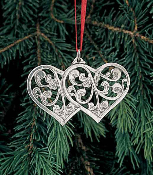 Double Rosemaling Heart Pewter Ornament Norway