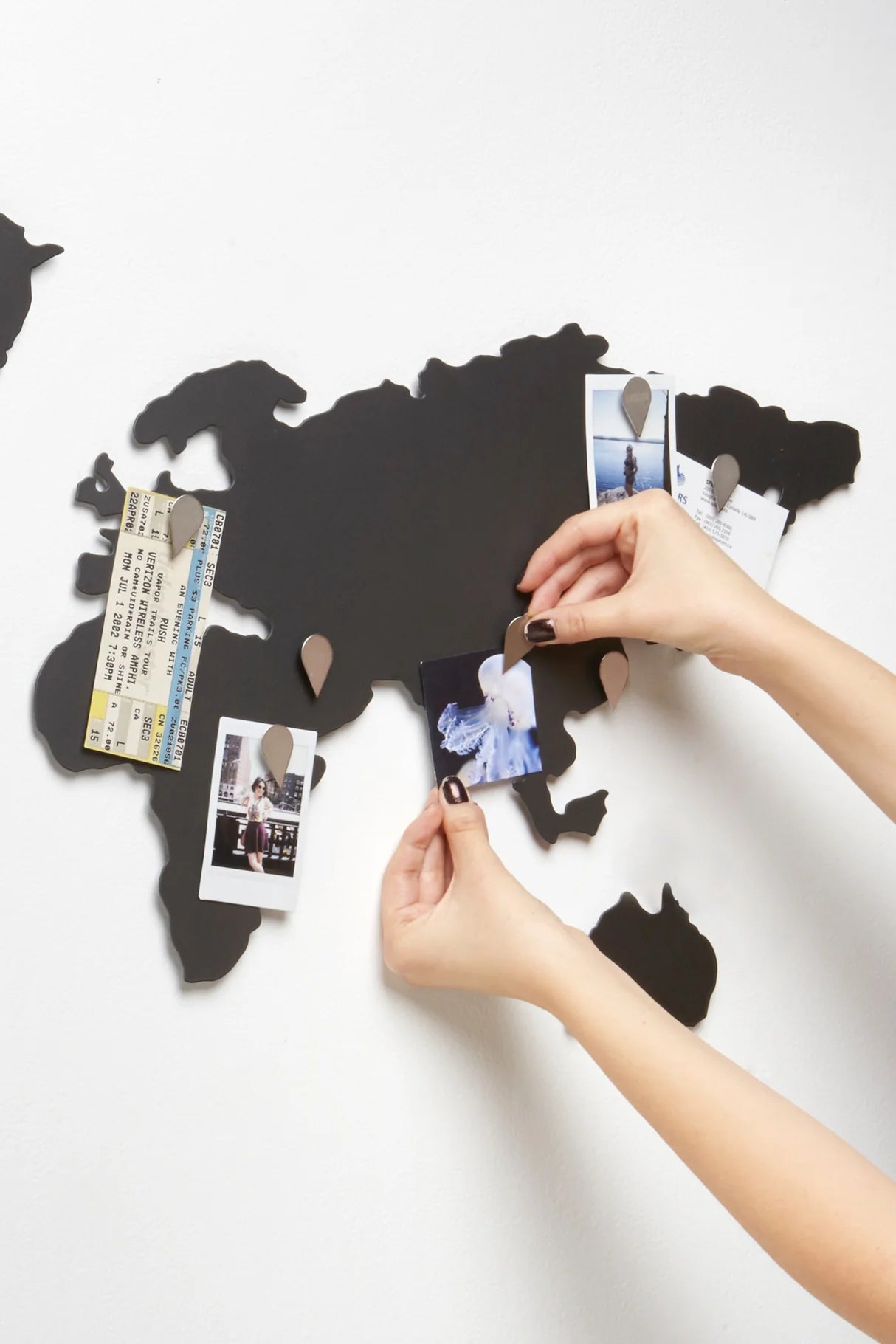 - Track Your Travels: This stamped metal decorative map comes with 12 nickel-plated magnets and its magnetic surface allows you to mark the places you've travelled or plan to visit next
